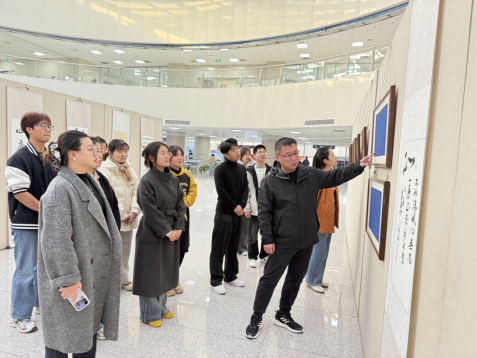 11月27日下午,医学院党总支副书记张萌带领学生党支部全体师生前往校图书馆,参观廉政主题书画作品展。