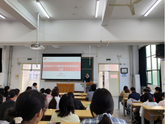 10月14日下午,医学院在A11教学楼325教室隆重举行2025级新生综合素质教育大会。会议由医学院党总支副书记张萌主持,医学院党政领导、各教研室教师代表、2025级全体新生及辅导员共同参加。