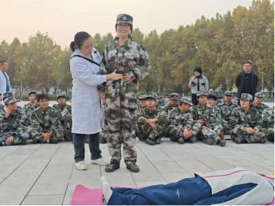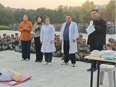 为落实学校国防教育主题特色活动要求,近日,医学院在博雅广场举办国防教育急救技能培训,将医学专业优势与国防教育深度融合,为军训新生打造特色国防教育课堂。医学院党总支副书记张萌、教师李红、李文生及辅导员王利军、赵文举参与活动。