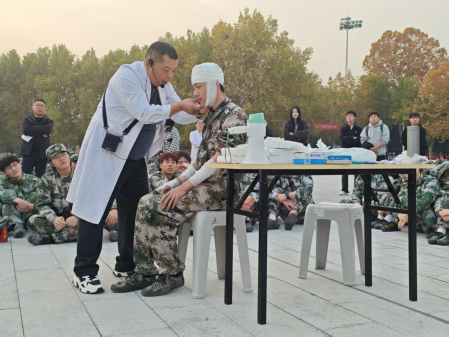 活动旨在深化国防教育内涵,创新地将战时常备的急救技能与日常突发事件处置能力相结合。张萌在动员中指出,掌握扎实的急救本领,不仅是医学院学子的专业素养,更是新时代青年服务社会、践行国防义务的责任担当。“这既是一堂专业课,也是一堂国防课,”他强调,“希望每一位师生都能成为和平时期校园的安全员,危难时刻守护生命的排头兵。”