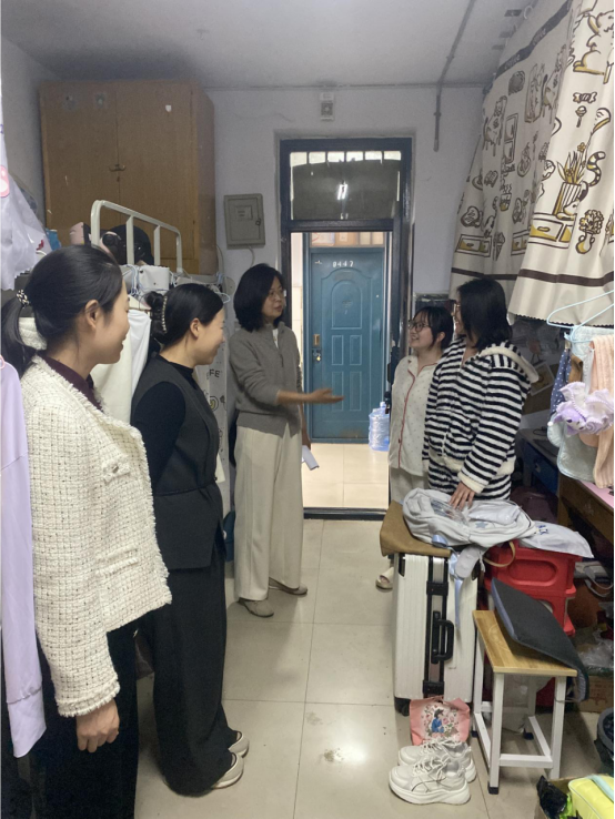 走访过程中,职丽娟一行与同学们亲切交谈,细致询问大家的学习进展、生活情况及假期安排。职丽娟重点强调了假期安全稳定工作的重要性,叮嘱离校学生要严格遵守交通规则,选择正规交通工具,妥善保管个人财物,按时平安返校;同时提醒留校学生要增强安全意识,注意宿舍用电防火、防盗防骗,保持与家人、老师的常态化联系,遇到困难及时向学院反馈,并现场排查了宿舍安全隐患。张萌结合医学专业特色,勉励同学们合理安排假期时间,在放松身心的同时不忘学业巩固,做到劳逸结合、张弛有度。